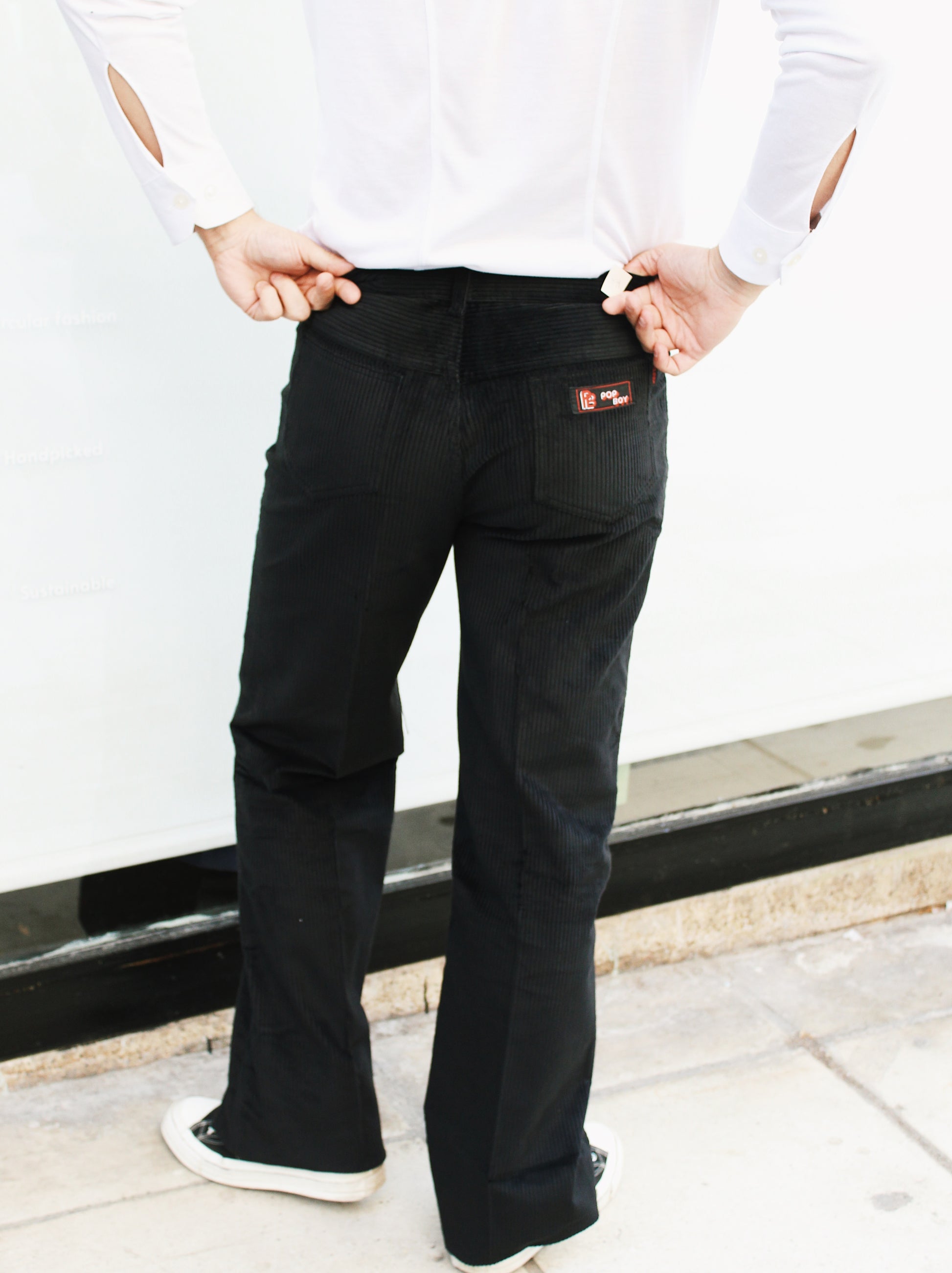 Deadstock κοτλέ παντελόνι σε καμπάνα retro γραμμή του 1970 από 100% heavt cotton. . Κλείσιμο μπροστά με φερμουάρ και κρυφή μεταλλική κόπιτσα.