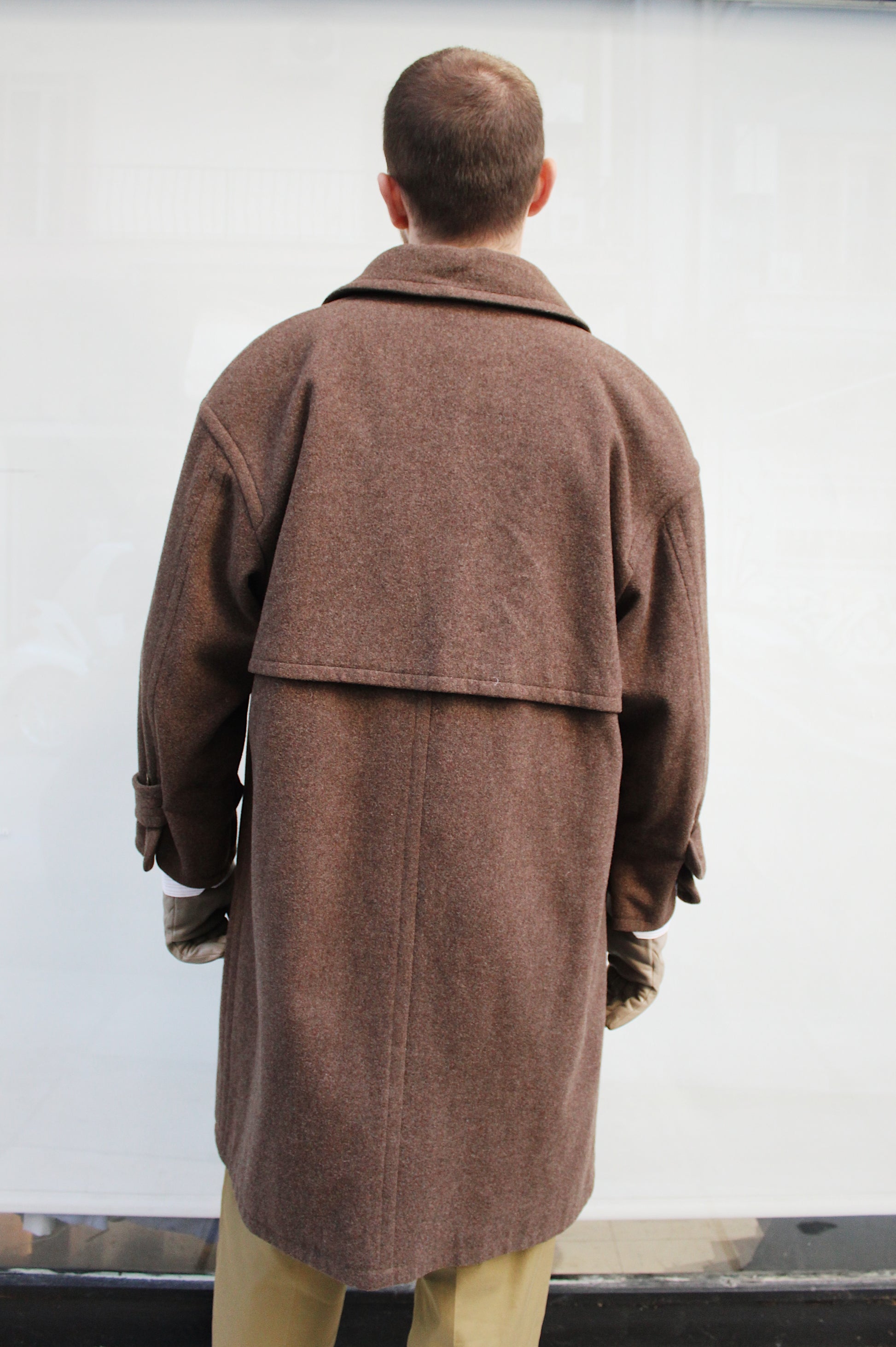 1990 trench coat σε κλασσική γραμμή. Μικρός κλασσικός γιακάς εποχής. Εσωτερικές και εξωτερικές τσέπες.