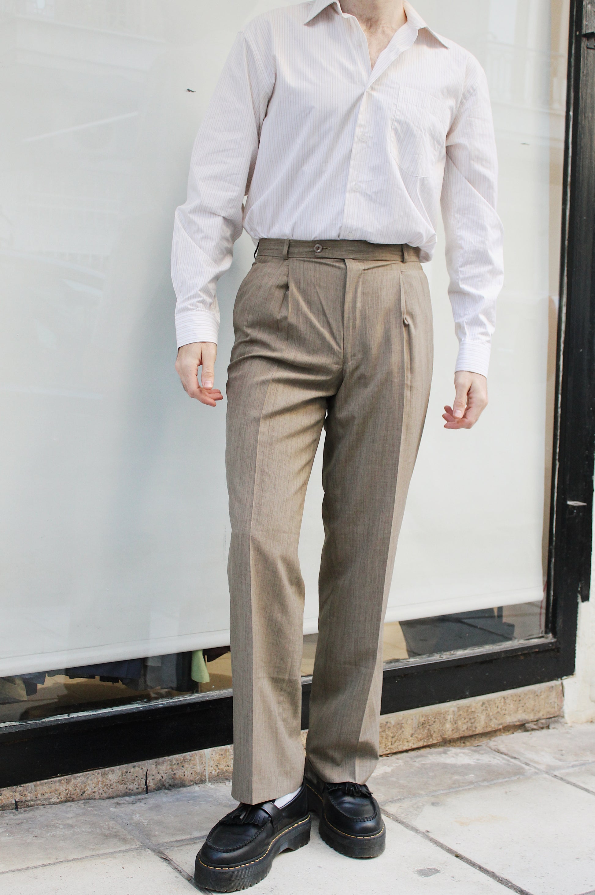 Οffice παντελόνι σε κλασσική ίσια γραμμή από 100% cool wool. Μέση με λεπτομέρειες και πίετες. Κλείσιμο μπροστά με φερμουάρ και κρυφή μεταλλική κόπιτσα.