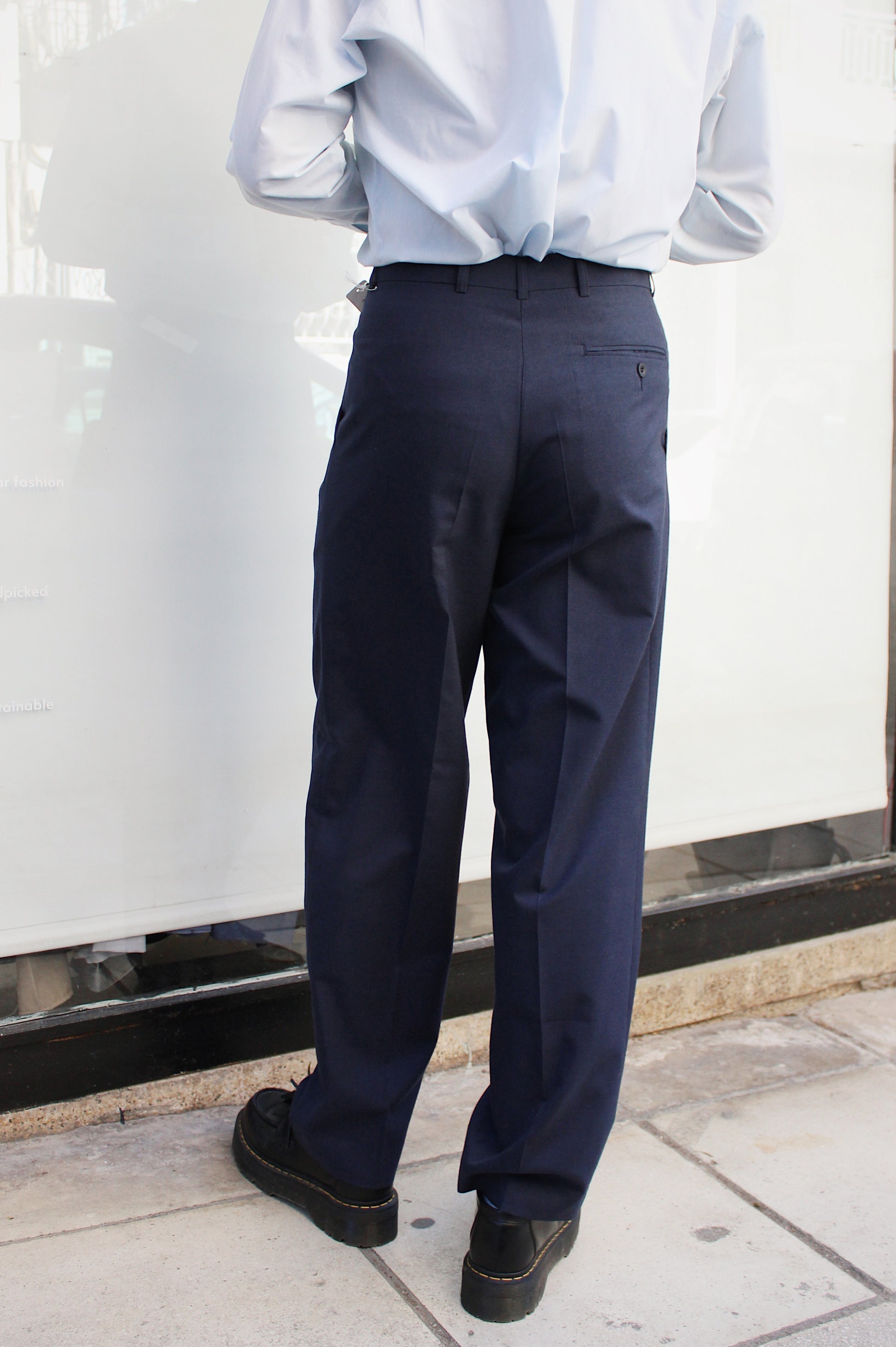 Deadstokc παντελόνι σε κλασσική retro γραμμή από 100% cool wool. Μέση με λεπτομέρειες και 3 πίετες. Κλείσιμο μπροστά με φερμουάρ και κρυφή μεταλλική κόπιτσα.