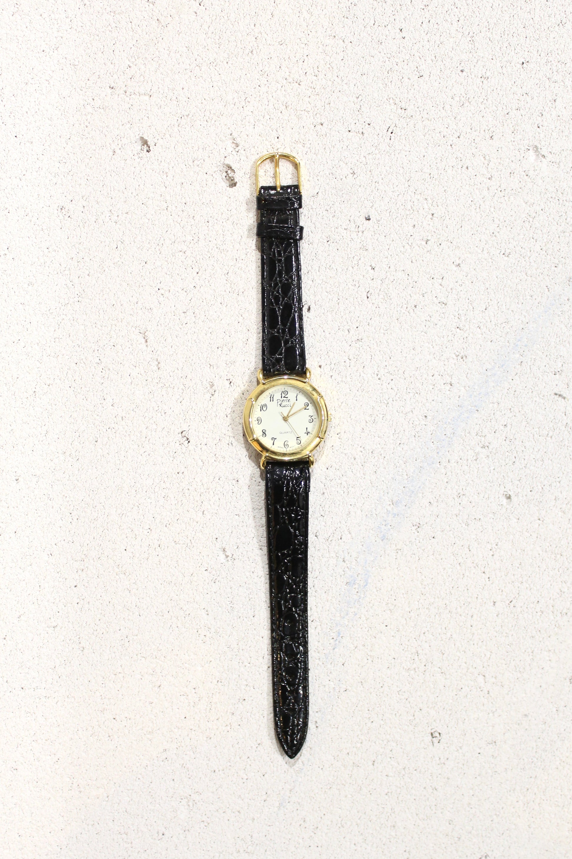 Pierre Rucci 1990 αναλογικό ρολόι με δερμάτινο λουράκι. Κάσα μεγέθους <30mm. Στρόγγυλο τζάμι. Λειτουργικό