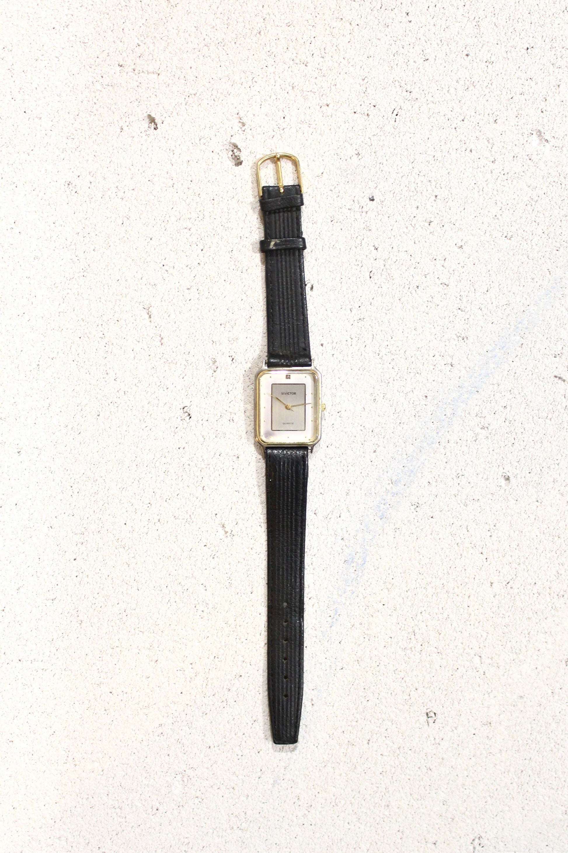 St.Vicotr 1980 αναλογικό ρολόι με δερμάτινο λουράκι. Κάσα μεγέθους <30mm. Τετράγωνο τζάμι. Λειτουργικό