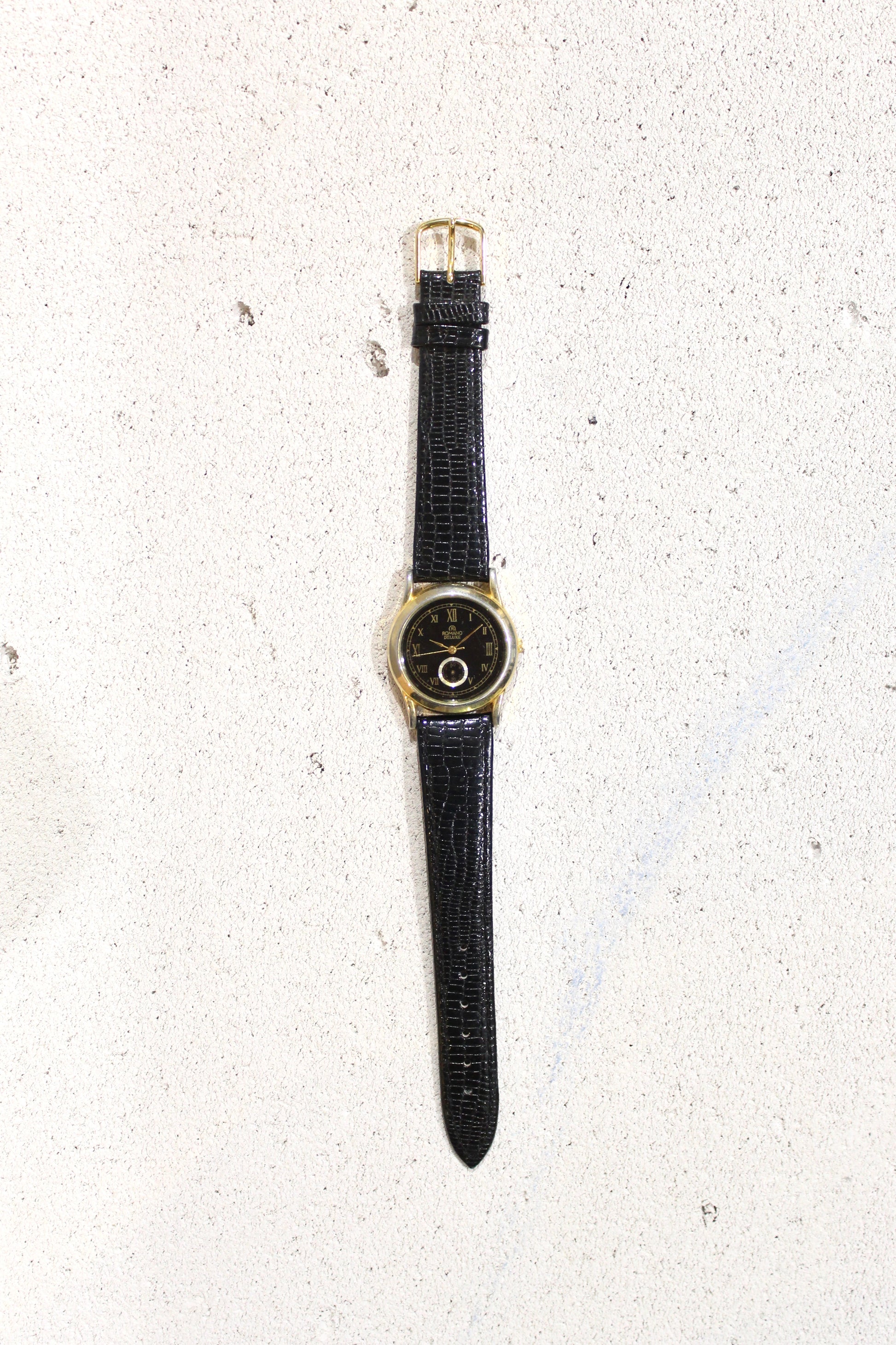 Romano Deluce δεκαετίας 1990 αναλογικό ρολόι με δερμάτινο λουράκιι. Κάσα μεγέθους <30mm. Στρόγγυλο τζάμι. Λειτουργικό