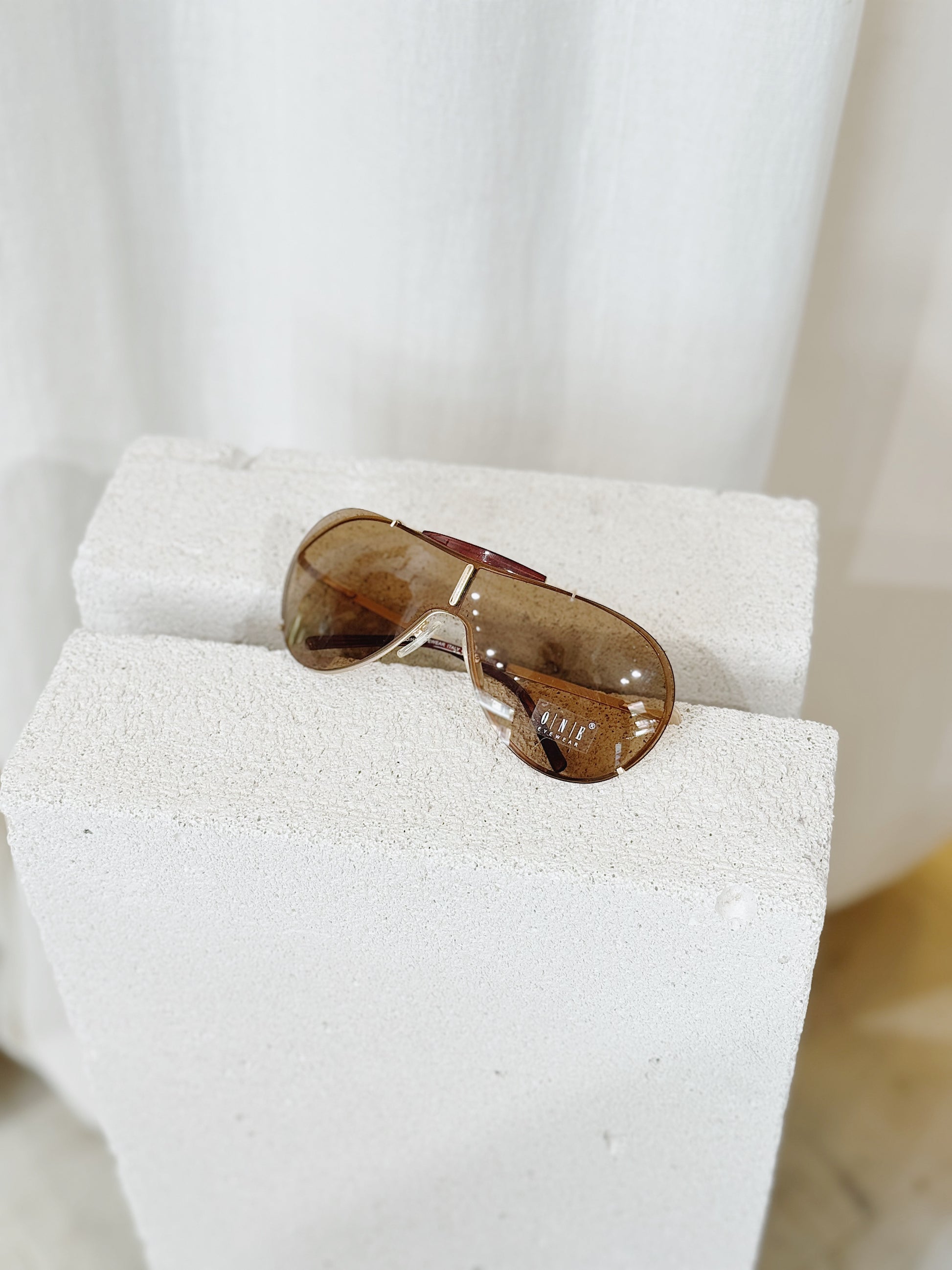 Vintage Aviator γυαλιά ηλίου με σκούρο bronze φακό και μεταλλικό σκελετό. Περιλαμβάνουν θήκη προστασίας. Απο κλείσιμο εταιρείας.