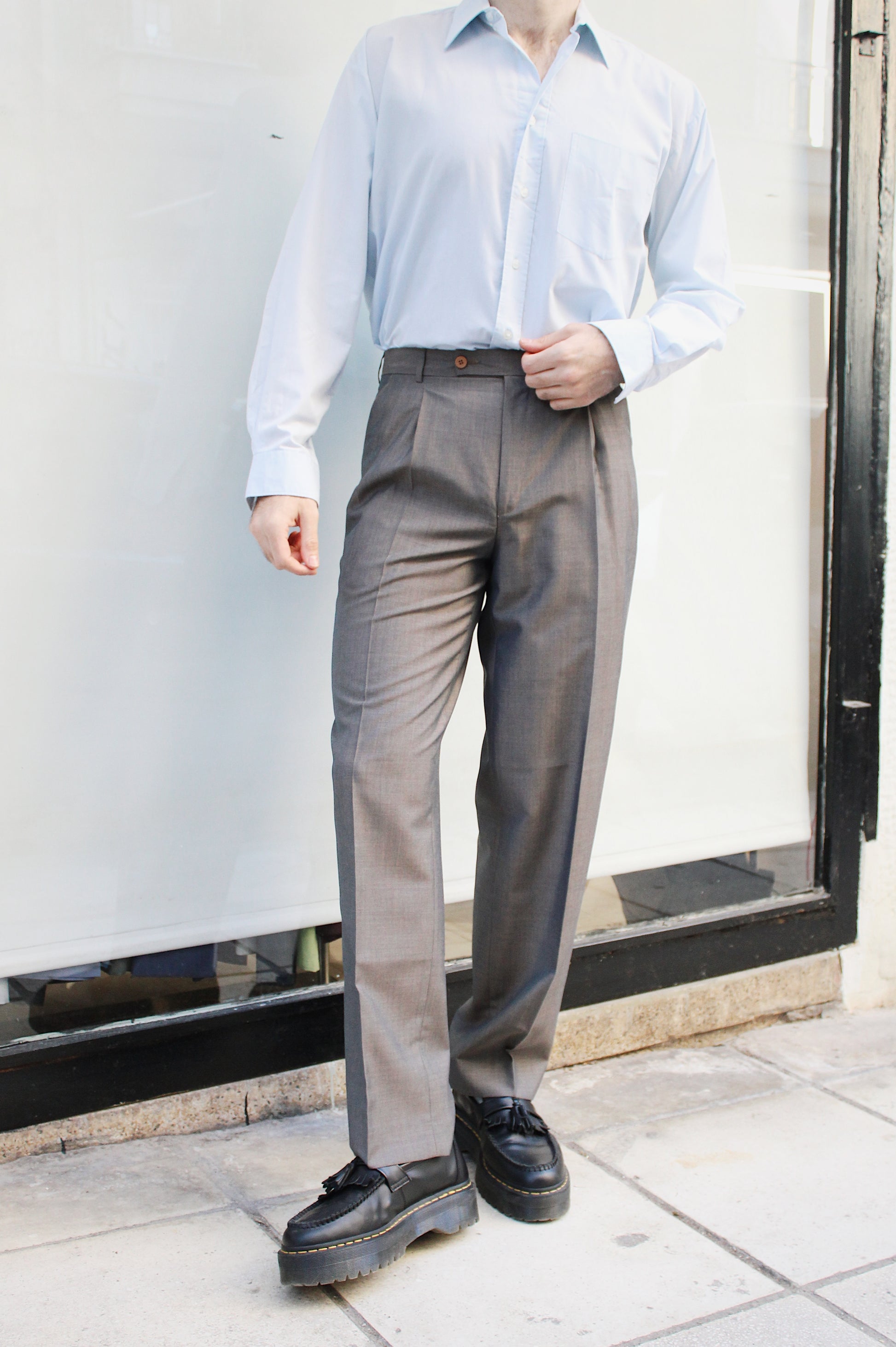 Οffice παντελόνι σε κλασσική ίσια γραμμή από 100% cool wool. Μέση με λεπτομέρειες και πίετες. Κλείσιμο μπροστά με φερμουάρ και κρυφή μεταλλική κόπιτσα.